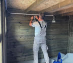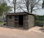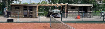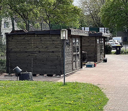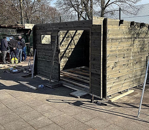Ende des letzten Jahres wurde beschlossen, den alten und in die Jahre gekommenen Schuppenim Eingangsbereich der Anlage abzureißen und 2 neue Hütten zu errichten.So musste zunächst der alte und marode Schuppen abgerissen werden. Danach wurden Fundamente für die beiden Hütten gesetzt, deren Aufbau relativ zügig erfolgte. Die Dächer wurden abgedichtet und die Elektrik neu installiert. In der rechten Hütte befindet sich nunmehr das gesamte Equipment für denSpielbetrieb. Die linke Hütte wird von Nicky`s Pub genutzt. Ein Unterstand zwischen den beiden Hütten ist fast fertig.(Zum Vergrößern der Bilder bitte auf das Bild klicken.)